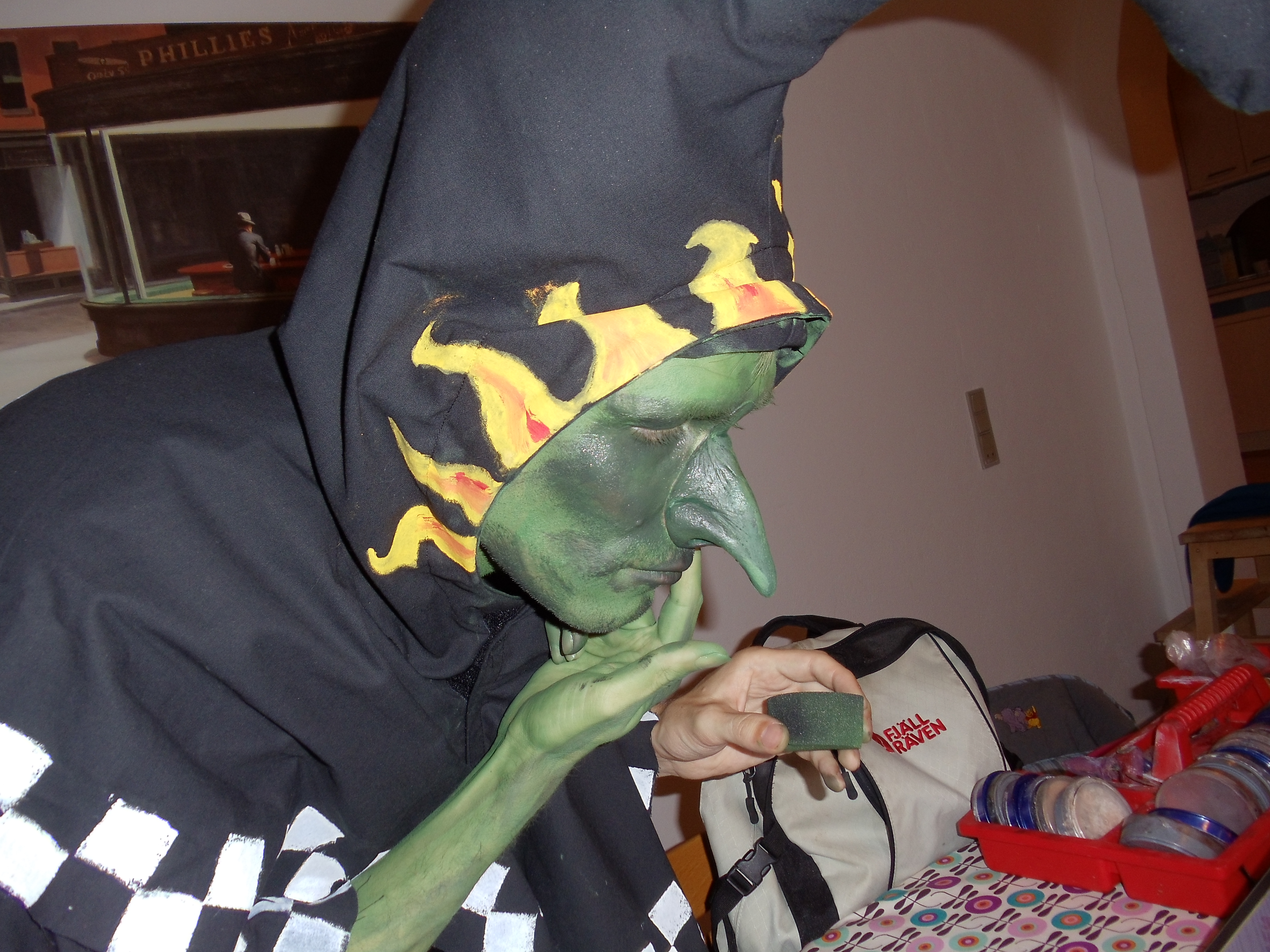 Facebook gruppen “Night Goblins 2013″ er allerede igang og afholder flere åbne workshops hvor man kan komme skrue på sit Mørkegoblin grej. De laver også sminke sessions så man kan få lidt rutine i sminke en Mørkegoblin eller bare få nogle ideer til hvad man ellers kan gøre udover bare at være grøn. Billedet til venstre viser et resultat af deres første workshop. De afholder workshop igen Søndag d.23/9 kl 1800 i Rollespilsfabrikken og så vil det være muligt på dagen at fange Jens, arrangør og Mørkegoblin kontaktperson til selv sammen event, så kom frisk!